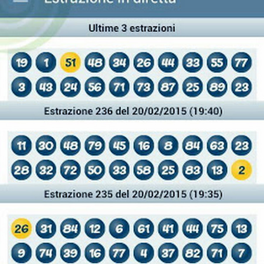Copioni teatrali (c) gruppo teatro tempo copioni. Copioni teatrali. Sezione autori a b c d e f g h i j k l m n o p q r s t u v w x y z scarica l'elenco completo dei copioni. Altre sezioni autori, musical, ragazzi. Archivio estrazioni 10 e lotto , archivio estrazioni 10 e. Hai uno smartphone ? Utilizza il qrcode! Utilizza il qrcode per collegarti direttamente al link e scarica subito l'app 10 e lotto ogni 5 minuti le estrazioni le potrai seguire direttamente dal tuo tablet o smartphone. App download the national lottery. With the official national lottery app you can also check and scan results, save your lottery numbers, and see how huge the prizes are for each draw. In addition all our updates and new releases to the android app will be applicable to the new app only. Gioca al 10elotto anche da mobile con l'app lottomatica.. Per giocare in totale movimento al 10elotto basta scaricare la nuova app e giocare ovunque sei. App lotto. Porta le estrazioni e il gioco sempre con te. 10 e lotto for android apk download apkpure. Using apkpure app to upgrade 10 e lotto, fast, free and save your internet data. The description of 10 e lotto visualizza le estrazioni del 10 e lotto ogni 5 minuti. Lotto ultime 16 estrazioni agipronews. Le ultime 16 estrazioni del lotto, estrazioni ruota nazionale, statistiche e previsioni per essere sempre aggiornati sul gioco sisal.